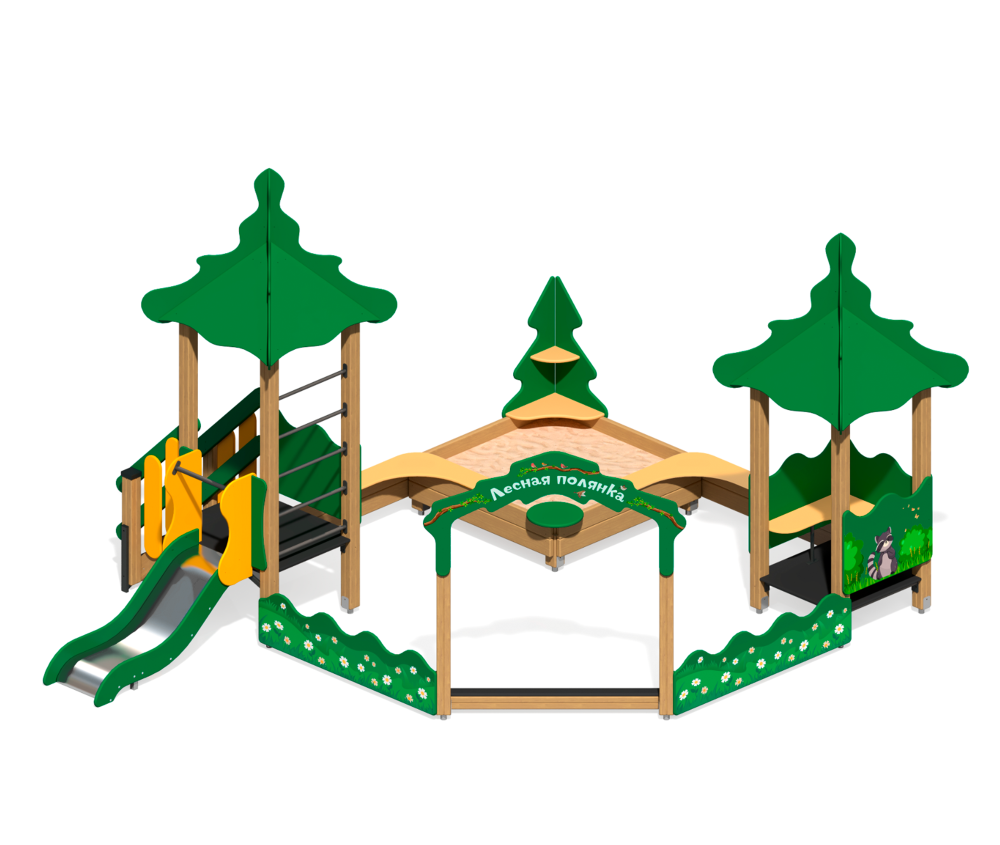 - Песочный дворик “Лесная поляна” с горкой