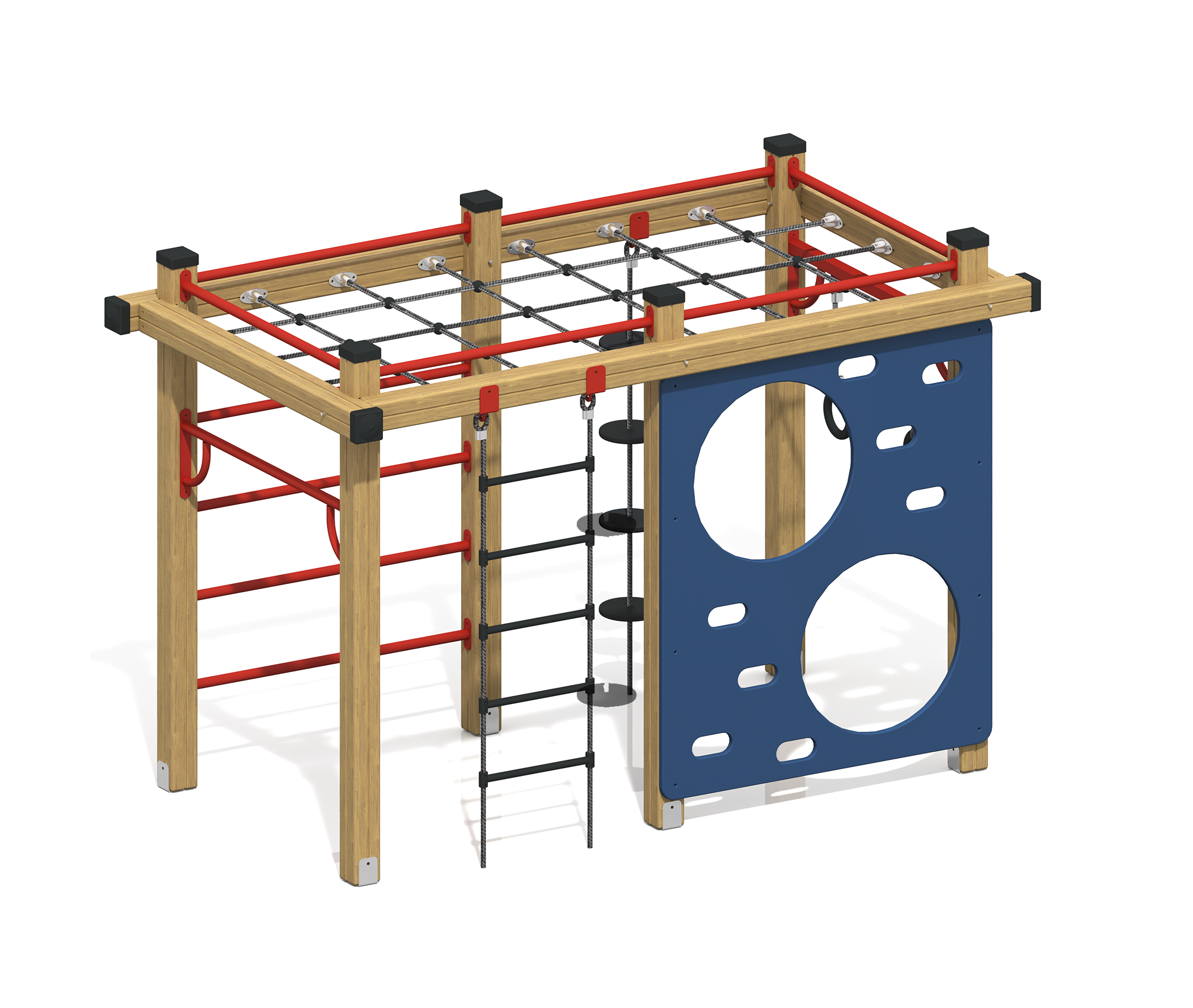 - Материалы: Сталь, Порошковое покрытие, Сосна, Канат, ФСФ 2/2