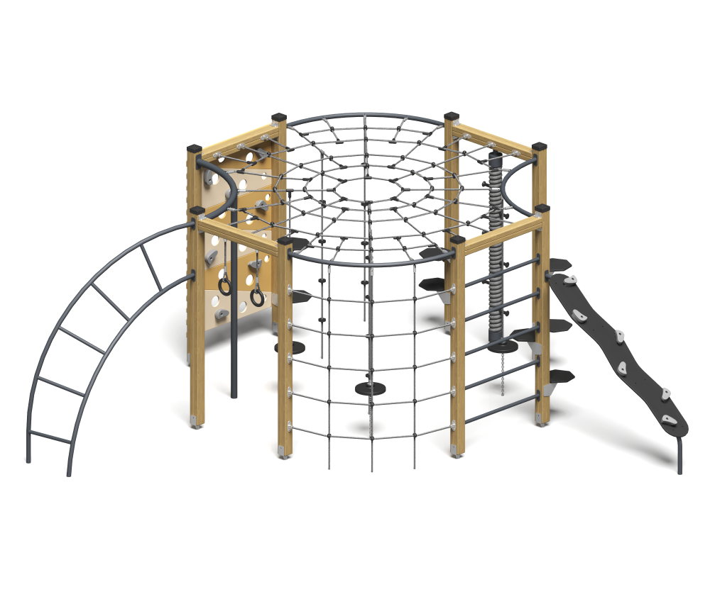 - Материалы: Сталь, Порошковое покрытие, Сосна, Канат, ФСФ 2/2