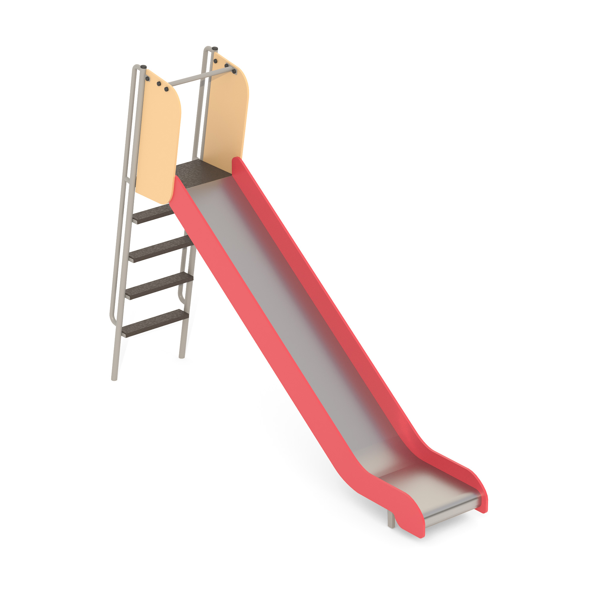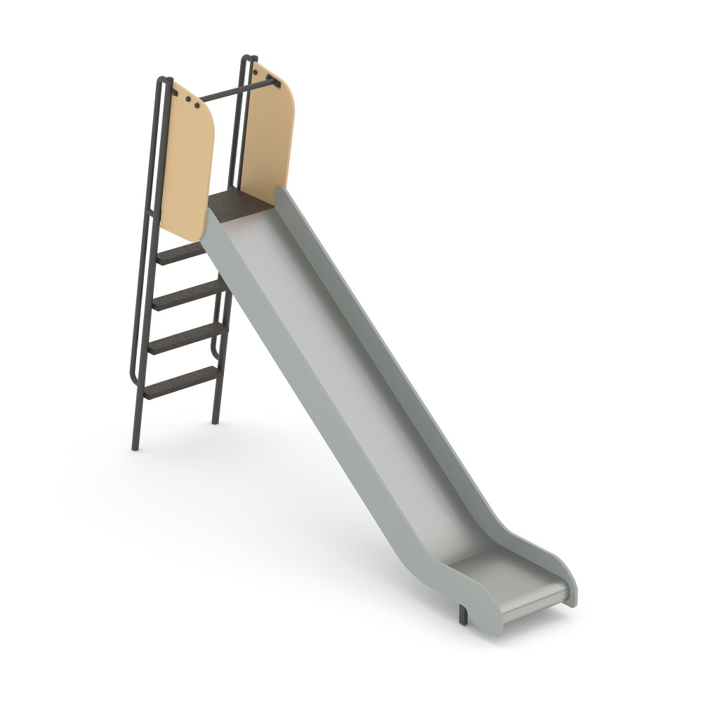 Горка представляет собой металлическую лестницу c фанерными ступенями, площадку, ограждения площадки и скат. Горка имеет стартовую площадку, полосу скольжения и полосу торможения. В целях безопасности на стартовом участке горки предусмотрены защитные боковые экраны. Высота горки составляет 1550 мм.