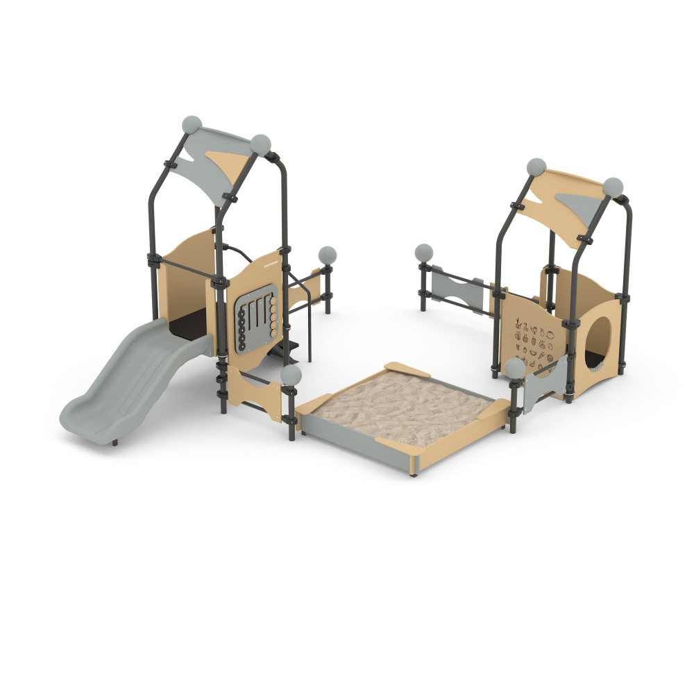 Это игровое оборудование изготовлено для оснащения уличных детских площадок. В составе есть: