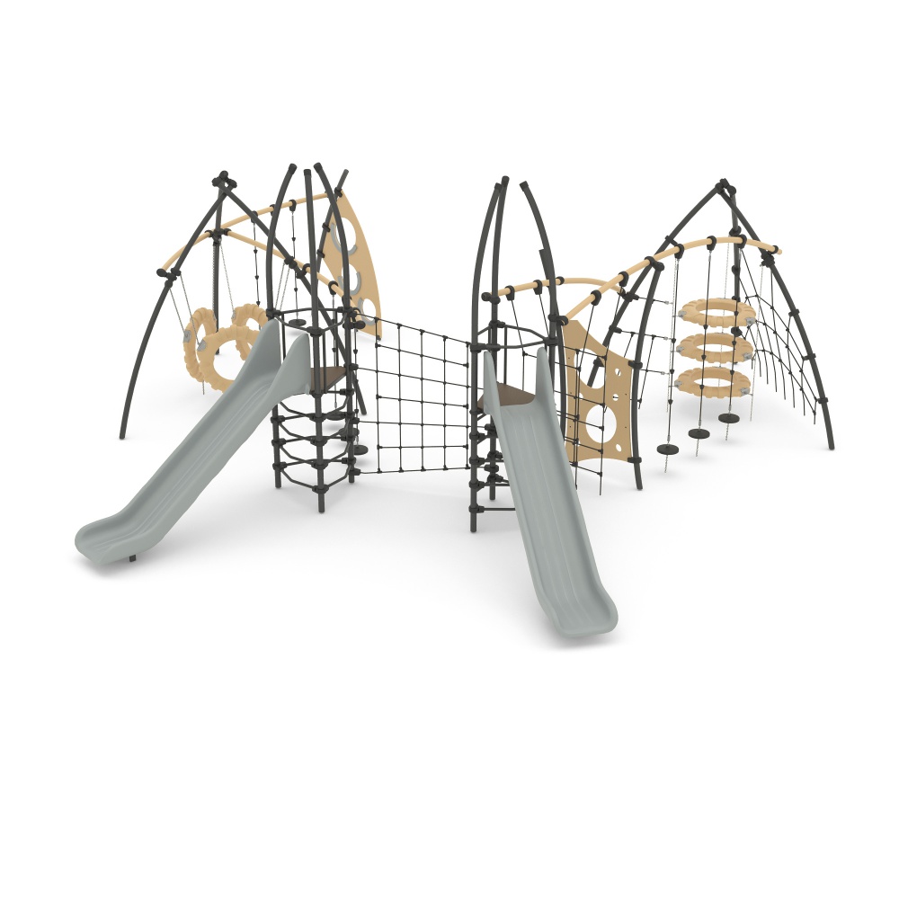 Канатный лаз "Паутина" из атмосферостойкого армированного полипропиленового каната. Крепится резьбовыми соединениями на стойках. Позволяет подниматься с нулевого уровня и переходить между площадками игрового комплекса.