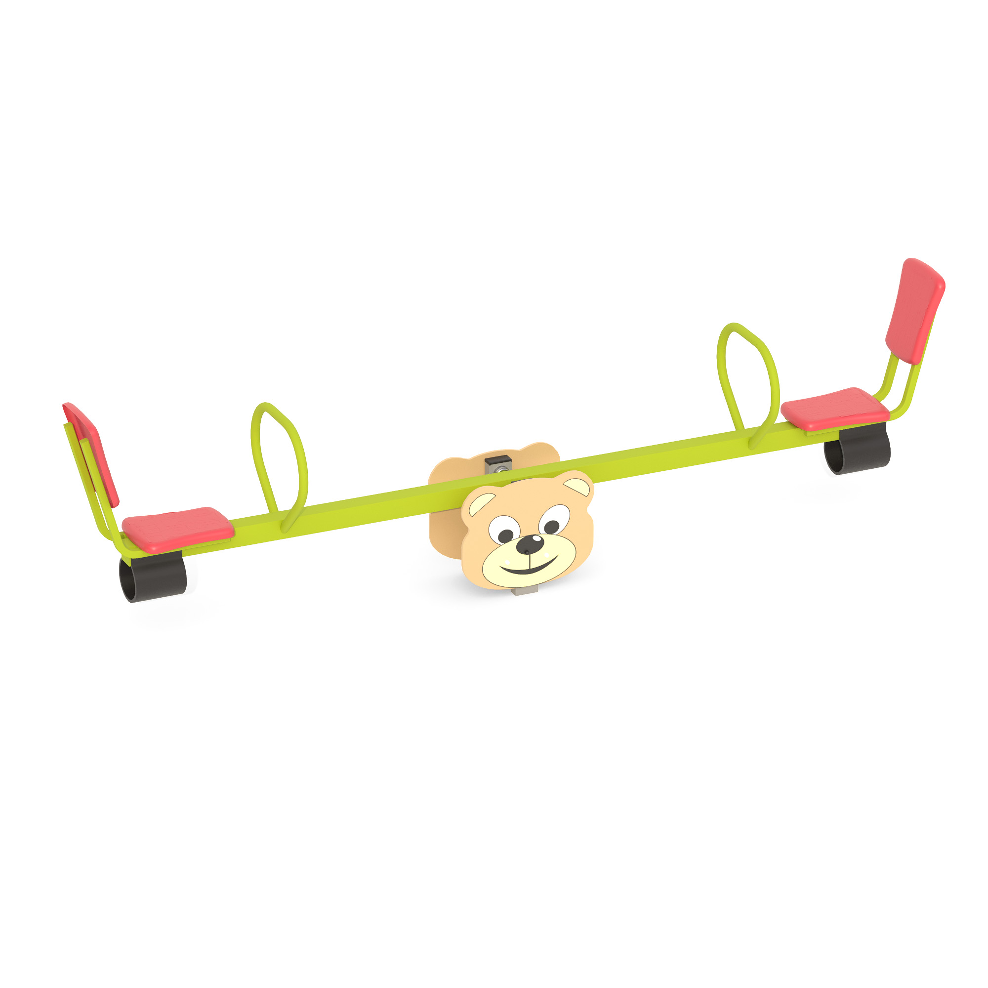 Конструкция способствует развитию координации, чувства равновесия и социальных навыков, так как требует взаимодействия двух детей. Качалка изготовлена из влагостойкой фанеры и металла с порошковым покрытием, что обеспечивает долговечность и устойчивость к погодным условиям. Яркий дизайн привлекает внимание детей и украшает любую игровую площадку.