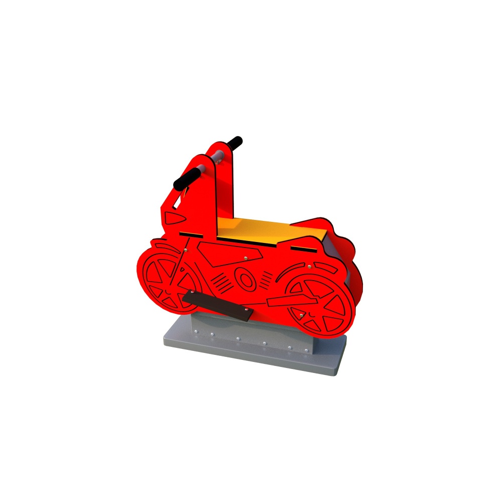 Качалка одноместная Romana 108.73.02 – игровое оборудование, монтируется на детских площадках и на территориях детских дошкольных учреждений. Пользоваться можно деткам начиная с двух лет. Качалка тренирует вестибулярный аппарат и координацию движений. Поскольку данное оснащение предназначено для детей, оно имеет повышенные требования к безопасности. Конструкция устойчивая, долговечная и красивая. На декоративных накладках нанесено изображение мотоцикла. Пластиковые детали изготовлены из трехслойного пластика (ПНД). Крепеж произведен из оцинкованного металла. Конструкция состоит из подвижной платформы и неподвижной части. Подвижная часть выполнена из листовой стали толщиной 2,5 мм и соединяется с металлокаркасом толщиной 4 мм.