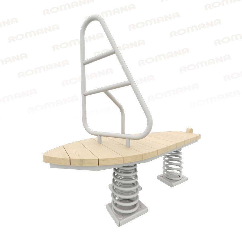 Состоит из 3 стальных пружин, подвижной платформы и держателя в виде паруса. Спаренный пружинный блок позволяет увеличивать нагрузку на всю конструкцию, поэтому качели подходят для массовой интенсивной эксплуатации.