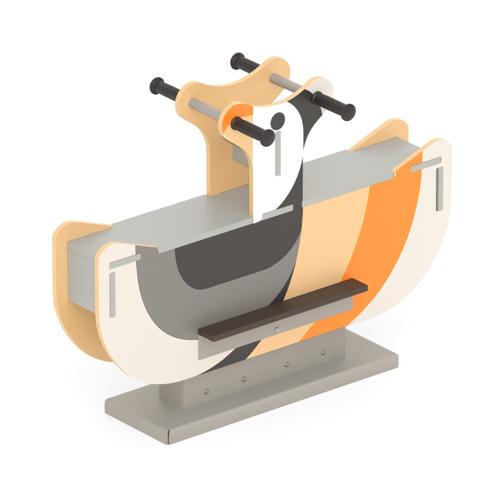 Качалка для тематических игр, предназначена для детей в возрасте от 2 лет, двухместная. На фигурную вставку при помощи УФ-печати нанесено изображение. Конструкция качалки предоставляет возможность качаться пользователю по оси «вперед-назад». Изделие приходит в движение за счет переноса веса ребенка - совершения раскачивающих движений «назад-вперед». Платформа обеспечивает плавное легкое качание, без ударов и усилий.