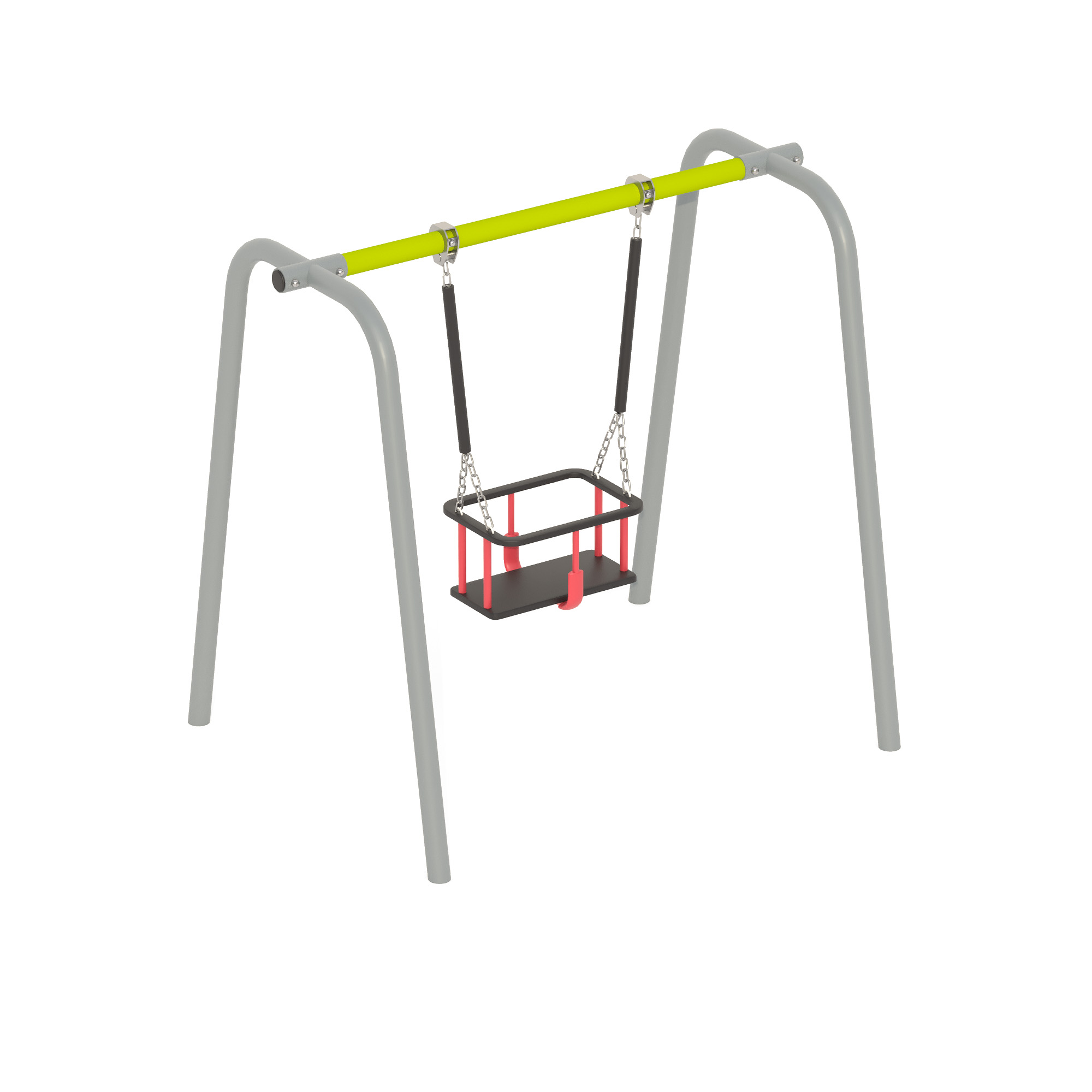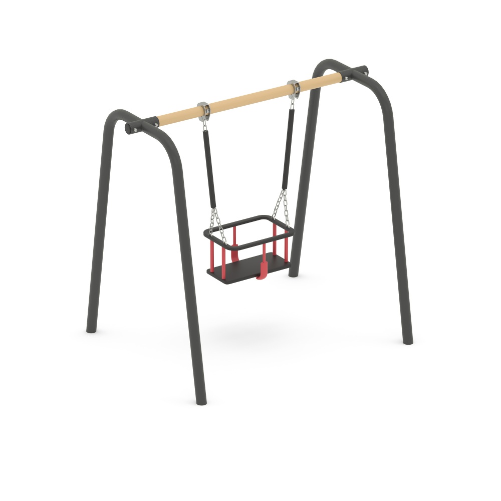 Качели предназначены для размещения на территории парков, дворовых территориях и мест общественного отдыха с целью организации досуга и гармоничного развития детей в возрасте от года. Сиденье представляет собой обрезиненный металлокаркас с амортизирующими бортиками сиденья, четырьмя боковыми перекладинами, ободом. Монтаж качели производится путем бетонирования грунтозацепов в грунт на глубину не менее 500 мм. Установка должна проводится на ровной площадке, свободной от насаждений. В зоне безопасности должно быть ударопоглощающее покрытие (песок, древесные опилки) минимальной толщиной 300 мм.