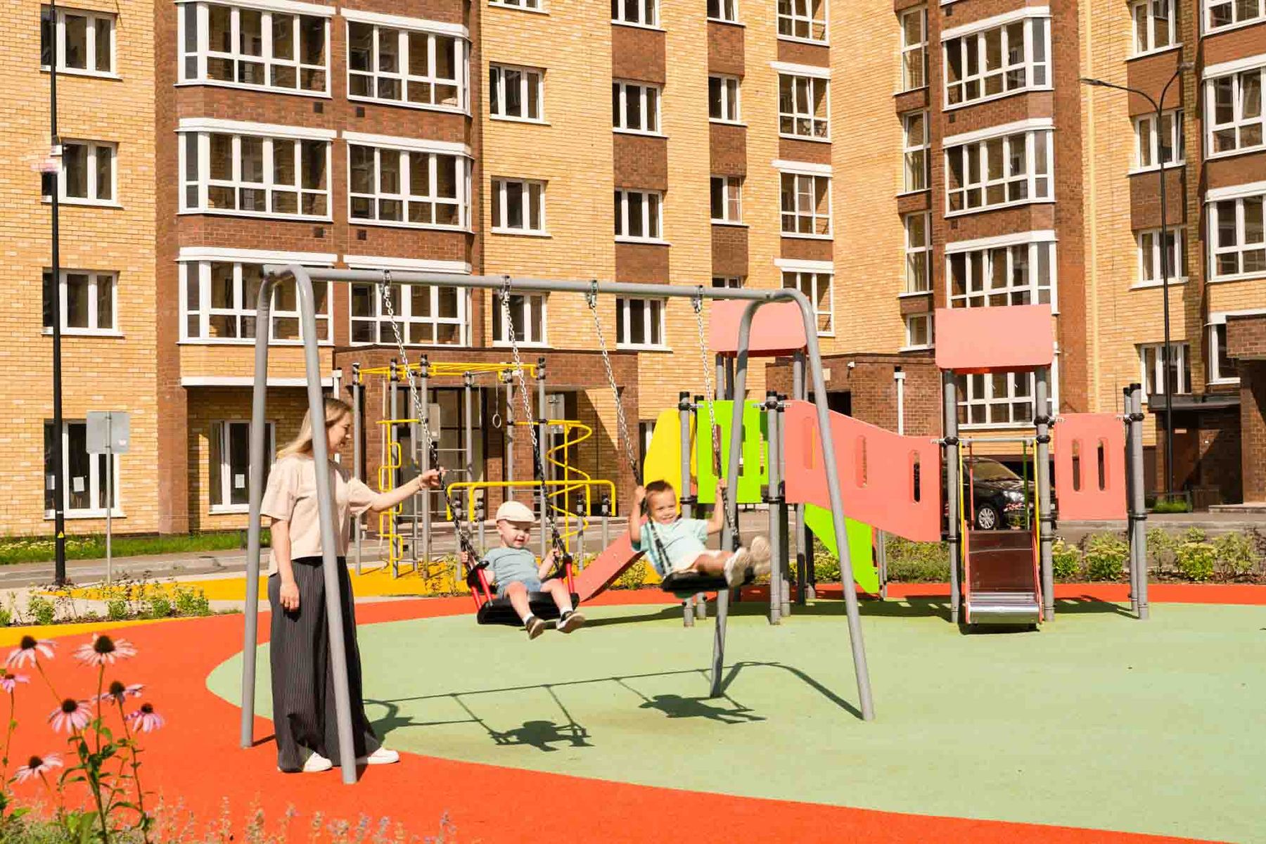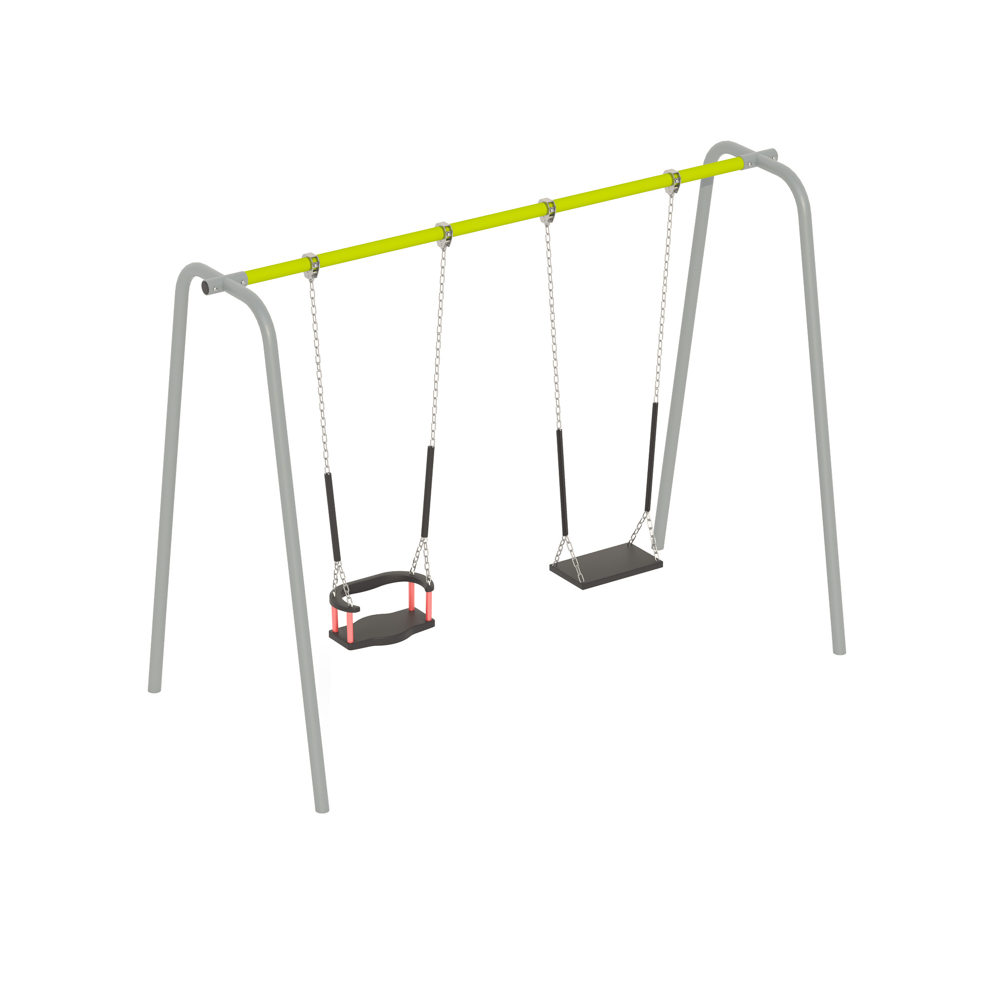 Качели предназначены для размещения на территории парков, дворовых территориях и мест общественного отдыха с целью организации досуга и гармоничного развития детей в возрасте от 4 до 8 лет. Сиденье представляет собой обрезиненный металлокаркас с амортизирующими бортиками сиденья и рельефным узором. Конструкция имеет выгнутую форму, что способствует удалению влаги с сиденья. Монтаж качели производится путем бетонирования грунтозацепов в грунт на глубину не менее 500 мм. Установка должна проводится на ровной площадке, свободной от насаждений. В зоне безопасности должно быть ударопоглощающее покрытие (песок, древесные опилки) минимальной толщиной 300 мм.