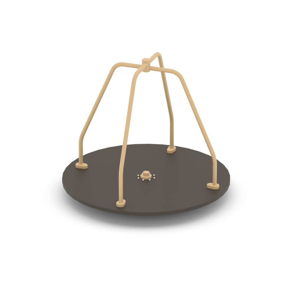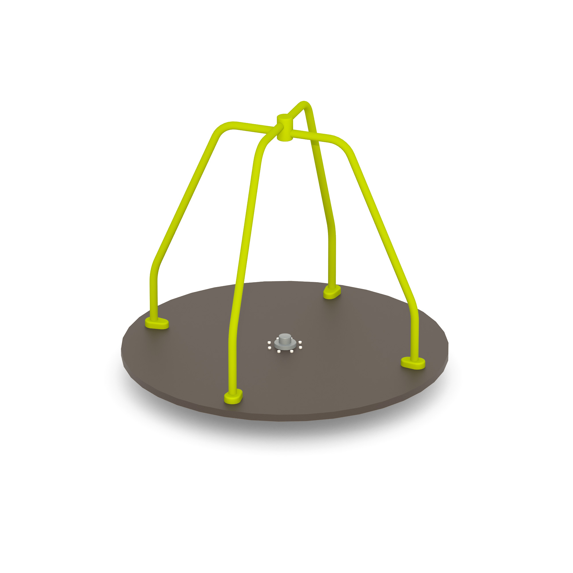 Карусель для детей в возрасте от 3 до 7 лет. Размещается на территориях игровых зон, зон отдыха, спортивных площадках. Выполнена в виде платформы узла вращения и поручней. Центральная стойка на карусели отсутствует, и платформа крепится только к узлу вращения.