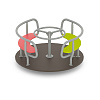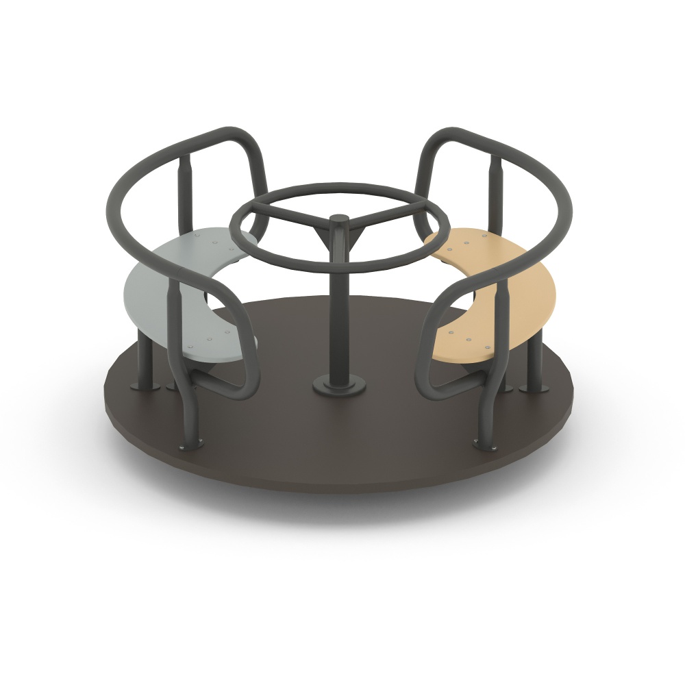 Карусель для детей в возрасте от 3 до 12 лет. Размещается на территориях игровых зон, зон отдыха, спортивных площадках. Выполнена в виде платформы (настил) на узле вращения (шпиль в сборе) с поручнем и сиденьями на настиле.