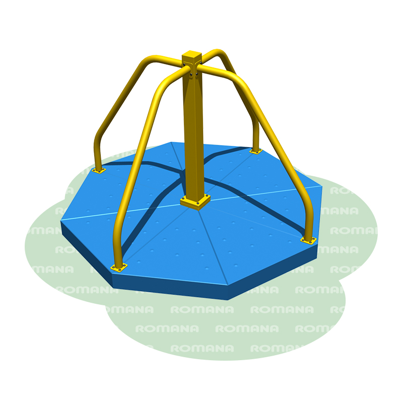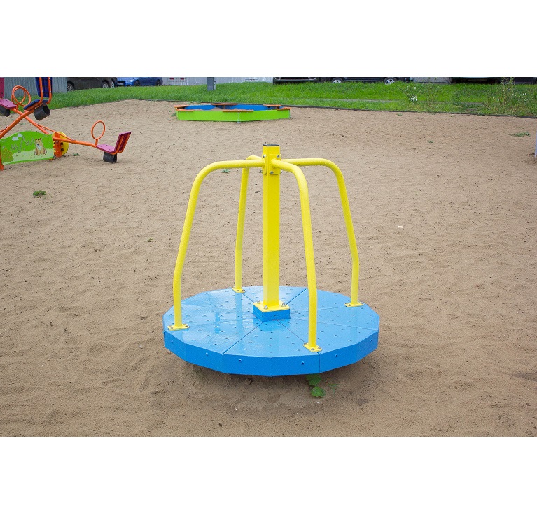 Карусель с вращающейся платформой - сине-желтая карусель с платформой в виде восьмигранника и четырьмя ручками. Подходят для детей со старшего дошкольного возраста.