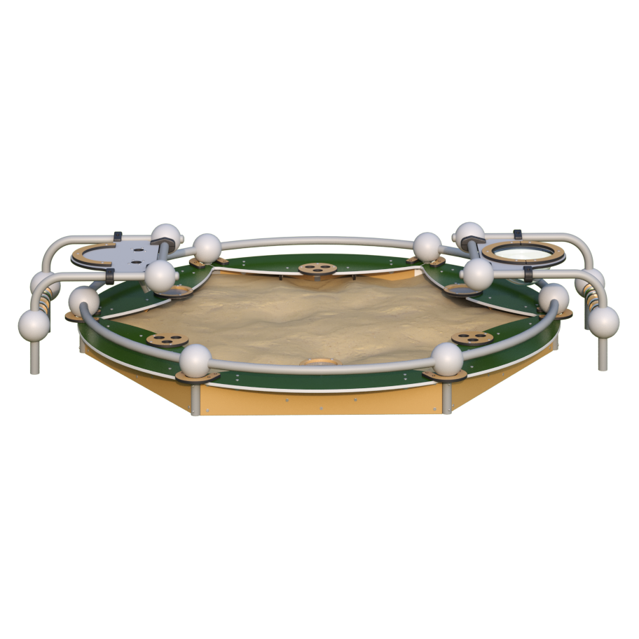Детская песочница выполнена из прочных пластиковых и металлических материалов. Она оснащена бортиками и удобными сиденьями для комфортной игры детей на свежем воздухе. Она полностью безопасна, включая ударопрочность и виброустойчивость. Использование песочницы исключает риск травм или застревания частей тела. Антивандальные элементы и закругленные края обеспечивают надежность и долговечность. Для установки песочница крепится анкерными болтами или монтируется методом бетонирования. Металлические части покрыты антикоррозийной полимерной эмалью, а выступающие соединения закрыты пластиковыми заглушками для предотвращения повреждений. Необычная форма и стильное цветовое решение делают песочницу универсальным элементом любой игровой площадки.