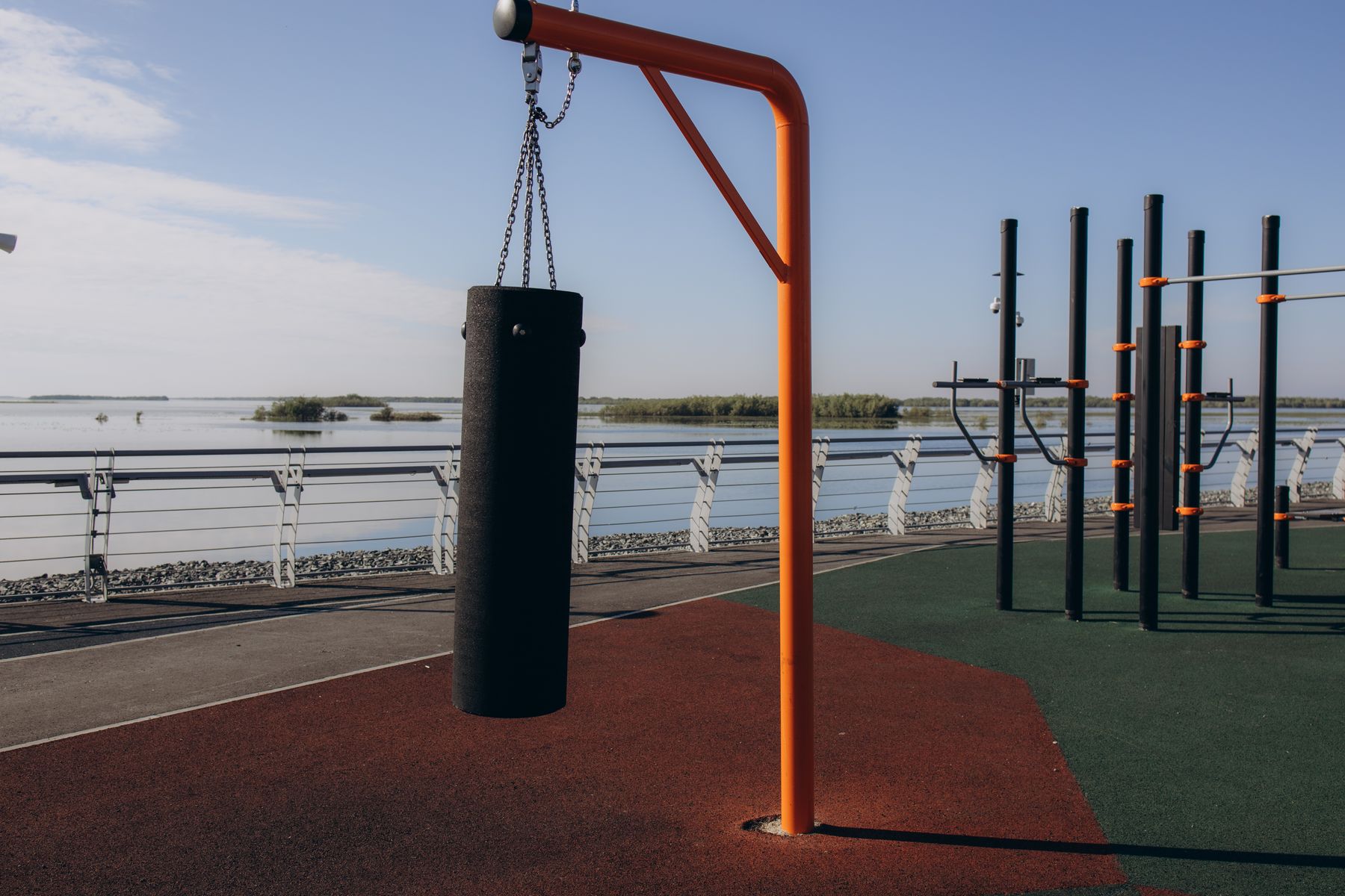 Боксёрская груша подвесная устанавливается на уличных спортивных площадках.