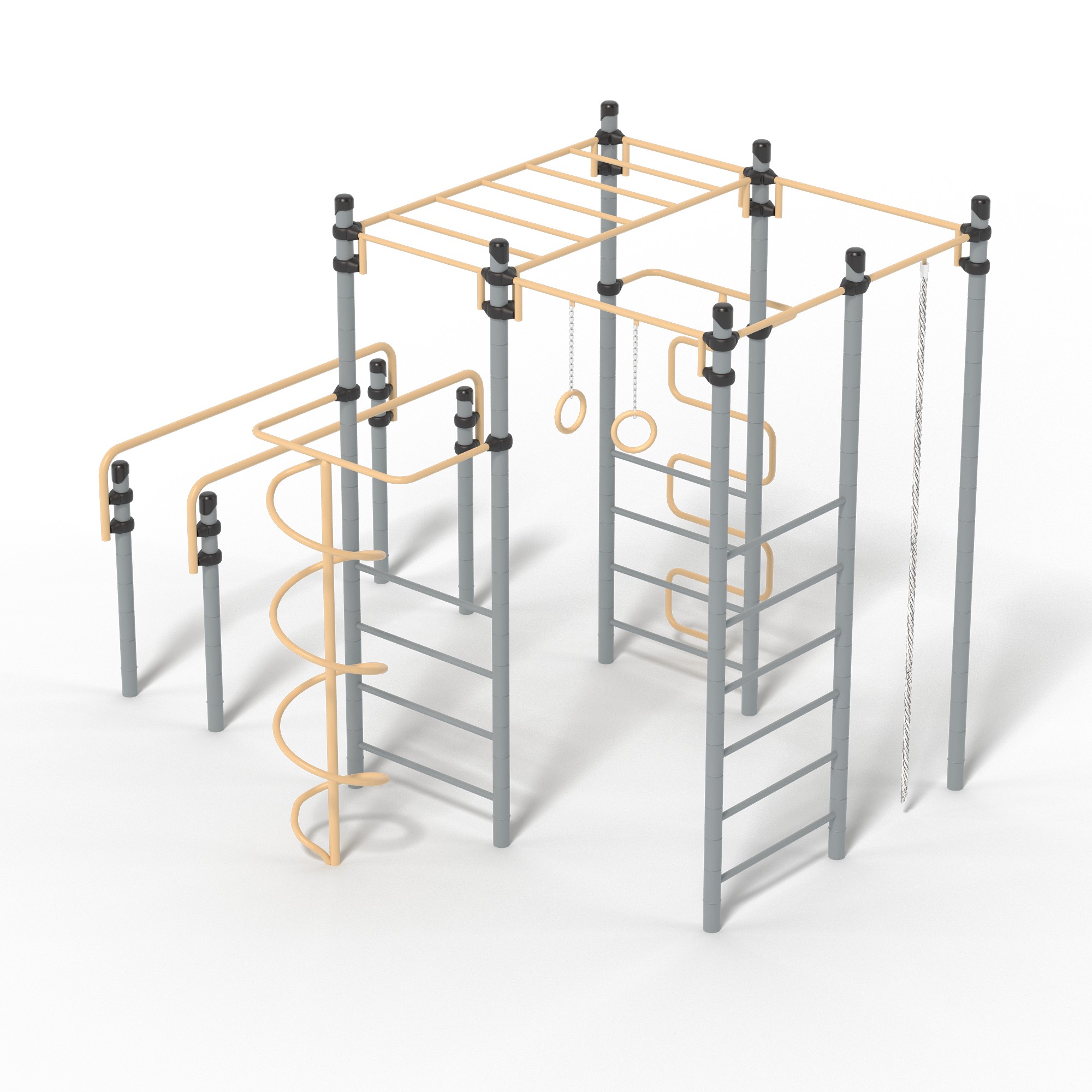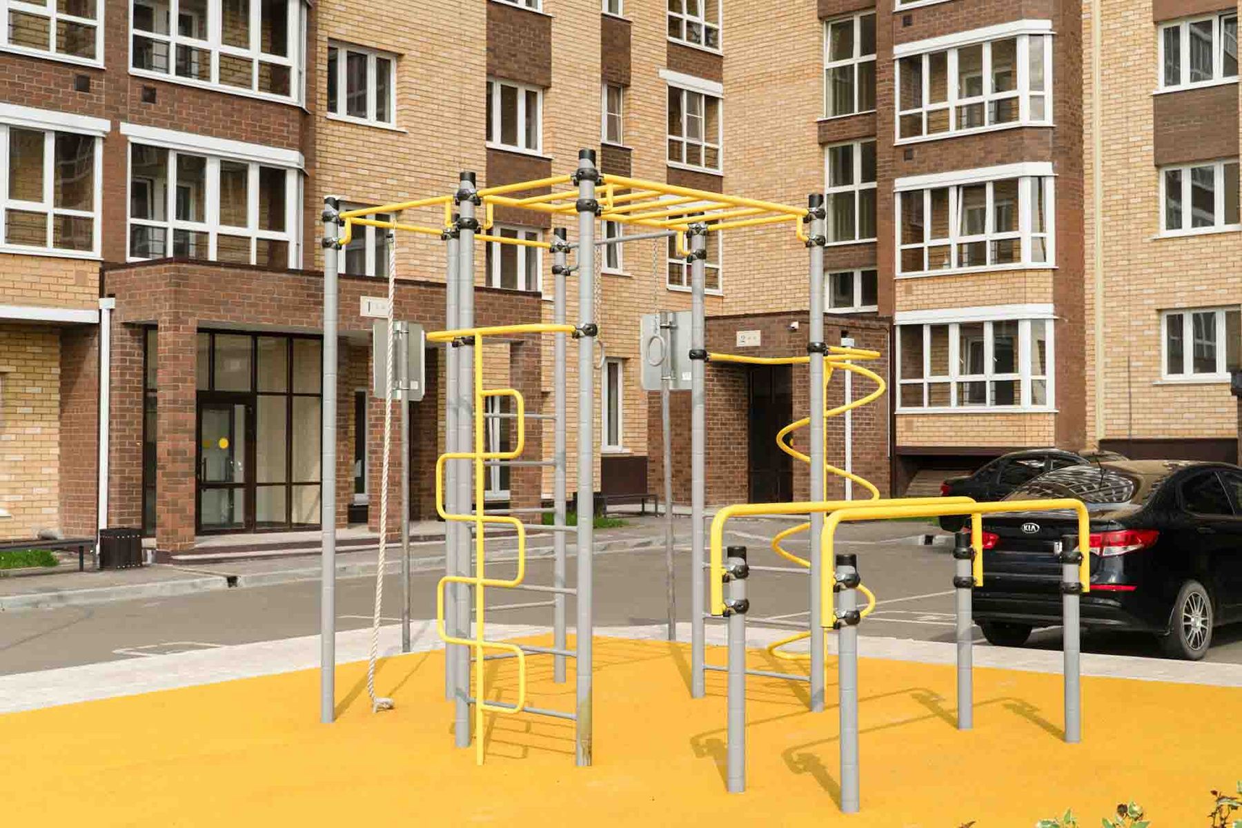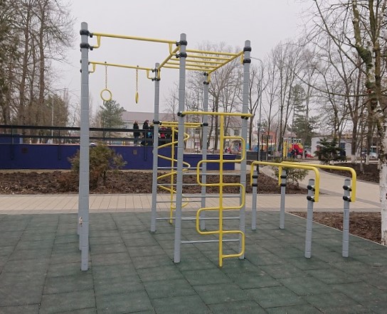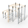 Спортивное оборудование предназначено для установки на территориях игровых зон, зон отдыха, спортивных площадках. Может эксплуатироваться круглогодично для пользователей от 7 до 14 лет. Предназначено для доступных занятий физической культурой на свежем воздухе. Представляет собой сборно-разборную конструкцию, состоящую из одной шестиступенчатой лестницы, двух четырехступенчатых лестниц, расположенных напротив друг друга, над которыми должен быть закреплен прямой рукоход, и одной стойки. Параллельно комплексу должны быть расположены спортивные брусья. Изделие устанавливается на открытых уличных участках, находящихся под контролем ответственного лица – эксплуатанта. Установка должна проводится на ровной площадке, свободной от насаждений. В зоне безопасности должно быть ударопоглощающее покрытие (песок, древесные опилки) минимальной толщиной 300 мм.