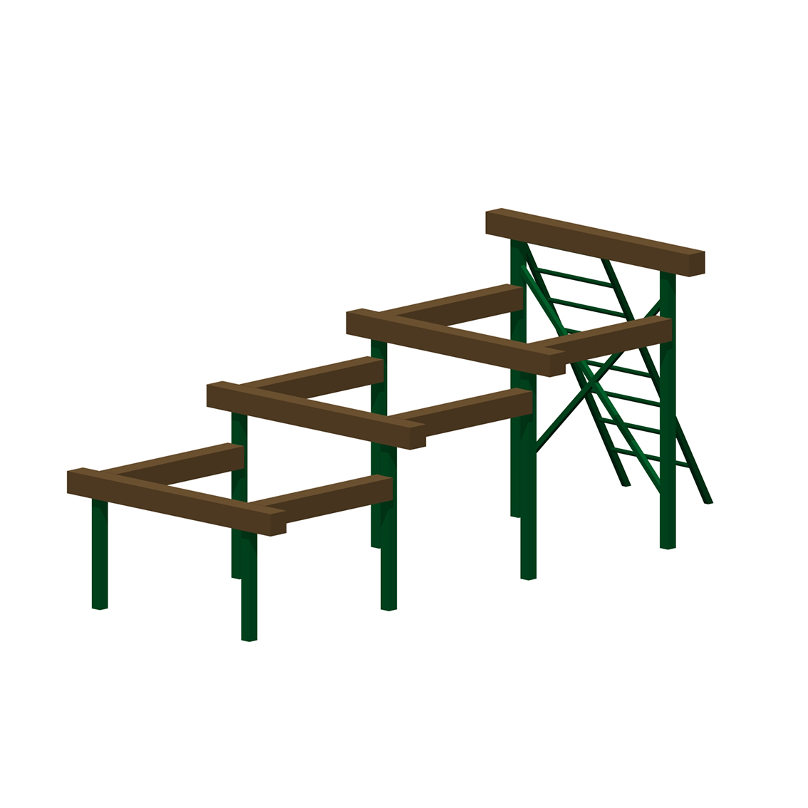 Данное игровое оборудование может стать одним из элементов спортивного комплекса, предназначенного для тренировок, или выступать как самостоятельный спортивный снаряд. Изделие состоит из металлического ступенчатого основания и деревянных брусков различной длины. Данный спортивно-игровой элемент способствует развитию равновесия, гибкости и ловкости. На нем можно тренироваться и взрослым, и детям. Оборудование устанавливается на любой ровной поверхности. Конструкция устойчивая, крепкая, антивандальная, выдерживает значительные ветровые нагрузки. Деревянные детали покрыты антисептическим раствором в заводских условиях и лаком для наружных работ. Металлические элементы окрашены полимерно-порошковой эмалью. Крепеж – надежное болтовое соединение.