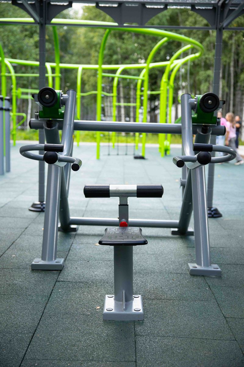 Уличный тренажер для выполнения изолирующего силового упражнения для спортсменов «Трицепс в положении сидя».