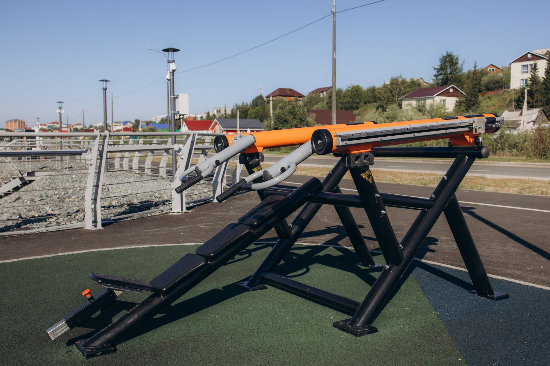 Уличный тренажер для базового силового упражнения «Жим на наклонной скамье».